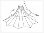 Anticlastic structures are pure tensile fabric surfaces having a curvature at a given point and in a particular direction, which is of the opposite sign to the curvature at that point in a perpendicular direction.